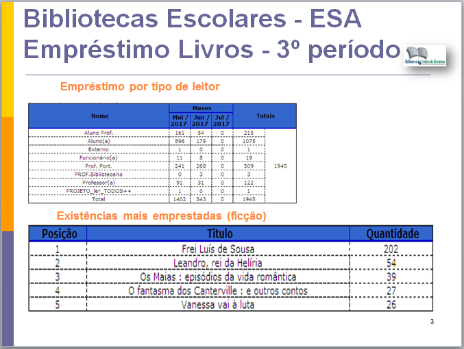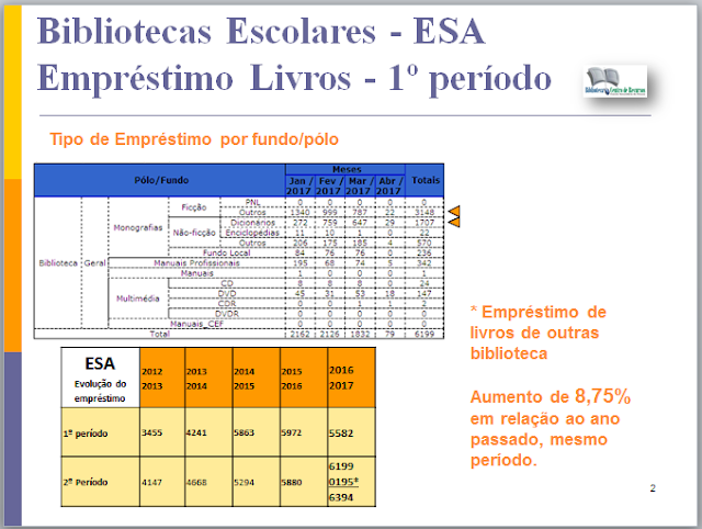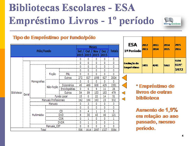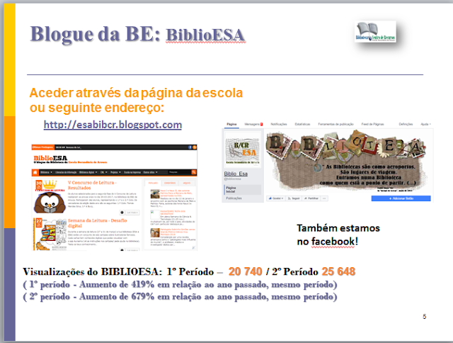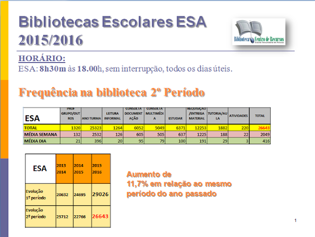 do BIBLIOESA: 1º Período – 3994 ( 2013/2014 - 1º P – 2783. Aumento de 43,6%)